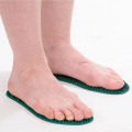 Sohlen auf den Boden legen, barfuß oder in dünnen Socken 15–30 Minuten ruhig stehen oder die Füße darauf ablegen.